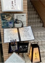友人3人で久々に会うために夕刻の鎌倉へ。 メンバーのうち1名が鎌倉の隣・逗子市在住のため、店のチョイスを任せた。彼女が「何を食べても美味しい」と勧めてくれた駅近の居酒屋「まちの」。ビルの2階の店だが、ビル入口に面した道路に店の案内があったので分かりやすかった。私がまず予約時刻の10分前に入店すると、入口そばにいた女性スタッフが笑顔で「いらっしゃいませ」と挨拶をした。名前を告げると台帳を確認し、「3名様ですね。こちらのお席へどうぞ」と予約の札が置いてある席へと案内された。席に着くとすぐ「おしぼりをどうぞ」と、清潔で温かいおしぼりを手渡した。フロアスタッフは1名のみ、厨房も調理スタッフ1名のようだった。メニューは最初から席に置いてあった。ほどなくして友人1が到着。